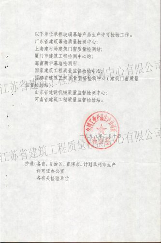 | 幕墻門窗產(chǎn)品生成許可證檢驗(yàn)單位 |