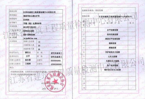 | 深基坑支護(hù)工程監(jiān)測(cè)機(jī)構(gòu)資格認(rèn)證證書(shū) |