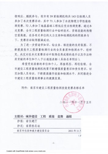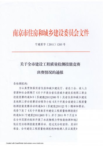 | 南京市住房和城鄉(xiāng)建設(shè)委員會《關(guān)于全市建設(shè)工程質(zhì)量檢測技能競賽決賽情況的通報(bào)》 |