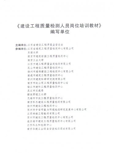 為了規(guī)范我省工程質(zhì)量檢測人員培訓(xùn)工作,全面提高工程質(zhì)量檢測人員的業(yè)務(wù)素質(zhì)和培訓(xùn)質(zhì)量,江蘇省建設(shè)工程質(zhì)量監(jiān)督總站組織編寫《江蘇省建設(shè)工程質(zhì)量檢測人員崗位培訓(xùn)教材》。我公司總經(jīng)理楊曉虹同志作為教材第三章(建筑材料檢測)及第四章(建筑結(jié)構(gòu)檢測)的組長,帶領(lǐng)公司其他幾位檢測專家方平、繆留根、張亞挺、陳新杰、湯東嬰等利用休息時間加班加點,圓滿完成了相關(guān)章節(jié)的編制工作。