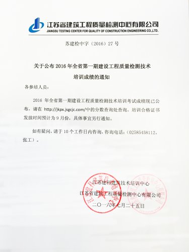 | 關(guān)于公布2016年全省第一期建設(shè)工程質(zhì)量檢測技術(shù)培訓(xùn)成績的通知 |