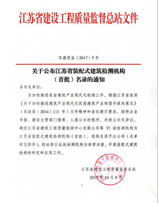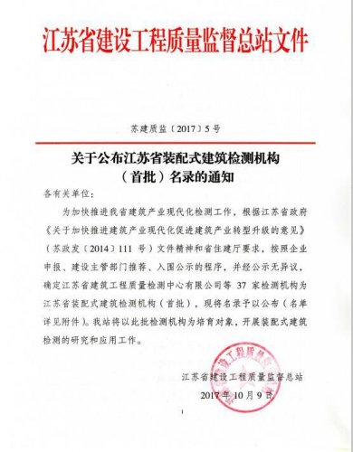| 中心成功入選首批“江蘇省裝配式建筑檢測機構(gòu)” |