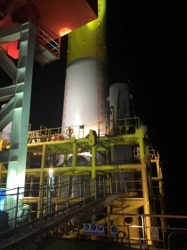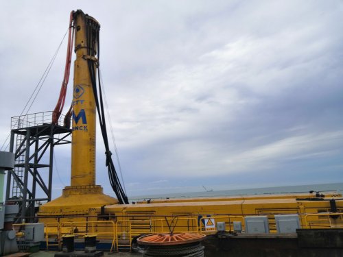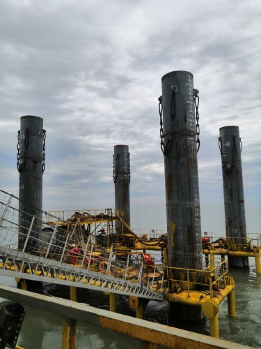 近期,中心地基基礎(chǔ)檢測部受中廣核工程有限公司委托,對南通市如東H8#海上風(fēng)電場樁基項(xiàng)目進(jìn)行高應(yīng)變檢測,是中心高應(yīng)變檢測從陸地到海域的零突破。 圖1 海上風(fēng)機(jī) 圖2 鋼管樁運(yùn)輸途中 圖3 海上打樁平臺 圖4 液壓打樁錘 該風(fēng)電場區(qū)位于如東縣近海海域,離岸距離約65km,平均潮位時最大水深約14.5~18.5m。海上風(fēng)電場東西長約11.5km,南北方向?qū)捈s4.5km,共有25臺4.0MW風(fēng)機(jī)組及40臺5.0MW風(fēng)機(jī)組。風(fēng)機(jī)樁基礎(chǔ)為?6.0-7.3m、L=80m鋼管樁樁基,單體樁重約850噸。此次檢測是中心承接檢測中樁長最長、樁徑最大一次的高應(yīng)變檢測。 中心領(lǐng)導(dǎo)高度重視此次風(fēng)機(jī)組樁基高應(yīng)變檢測,迅速組織技術(shù)人員制定了完備的檢測方案,同時做好各類安全防范工作。最終,項(xiàng)目組成員憑借專業(yè)的技術(shù)實(shí)力和豐富的檢測經(jīng)驗(yàn),克服海上風(fēng)浪、船體搖晃、通道濕滑、打樁錘轟鳴噪音大、無手機(jī)通訊信號、海上高空作業(yè)等重重困難,順利完成檢測任務(wù)。